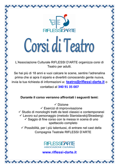 L’Associazione Culturale VISSI D’ARTE organizza corsi di Teatro per adulti tenuti dalla regista e attrice Donatella