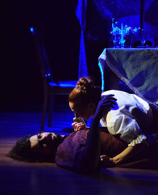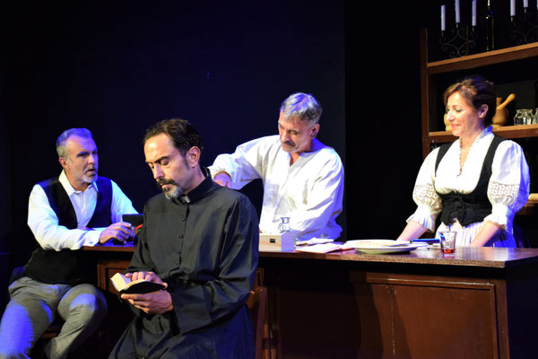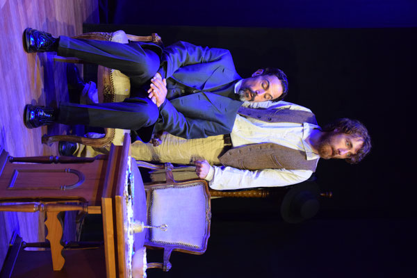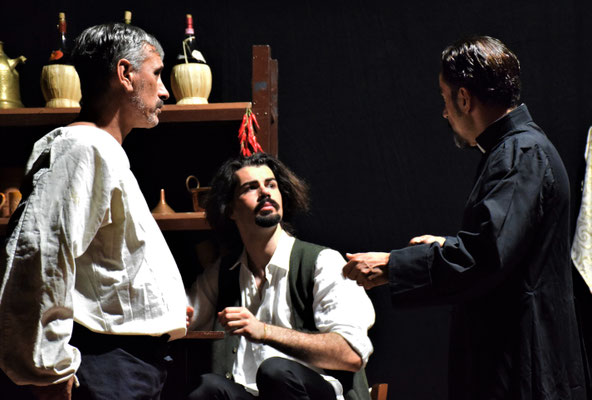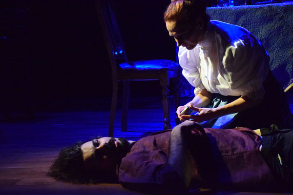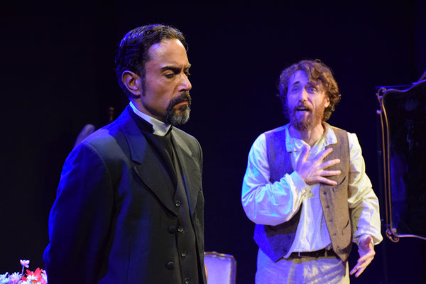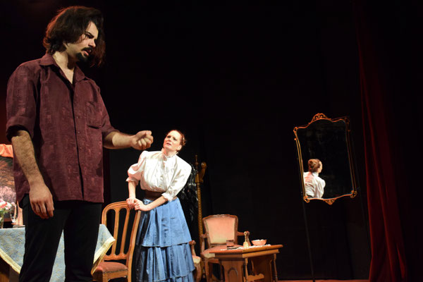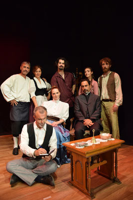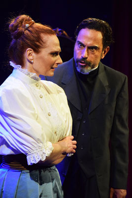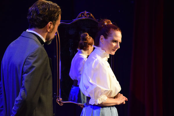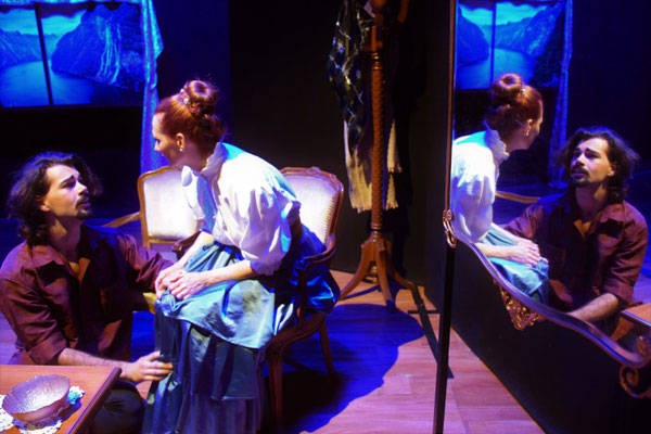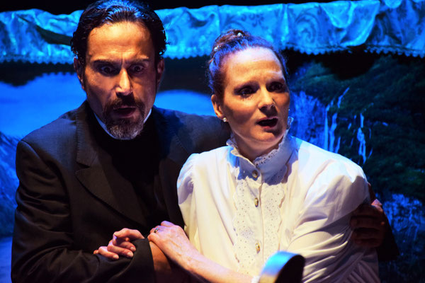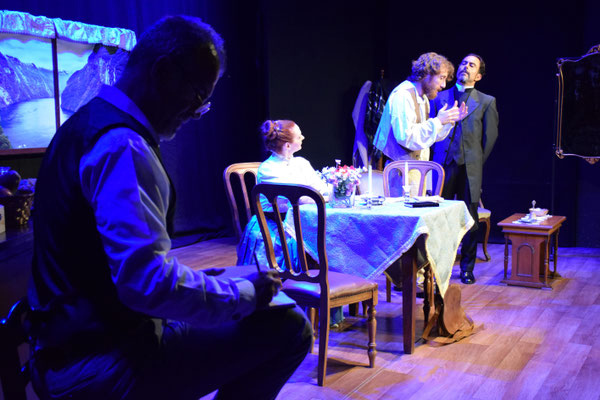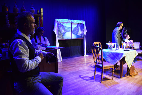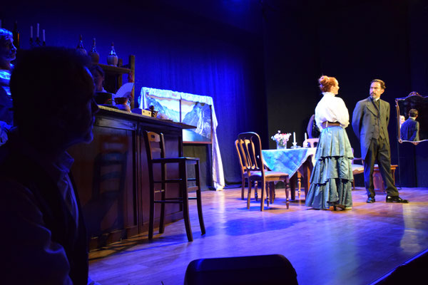 Nell’adattamento di Donatella Petricca, sono stati inseriti 3 personaggi che rimangono estranei all’opera originale per tutta la durata dello spettacolo: il ruolo di Henrik Ibsen e quello di due locandieri, marito e moglie, ai quali Ibsen narra, in una calda serata estiva del 1881, l’opera che sta scrivendo: “Spettri”, appunto. E man mano che Ibsen crea nella sua testa il copione e i vari personaggi, quello che lui racconta, magicamente prende vita sulla scena.